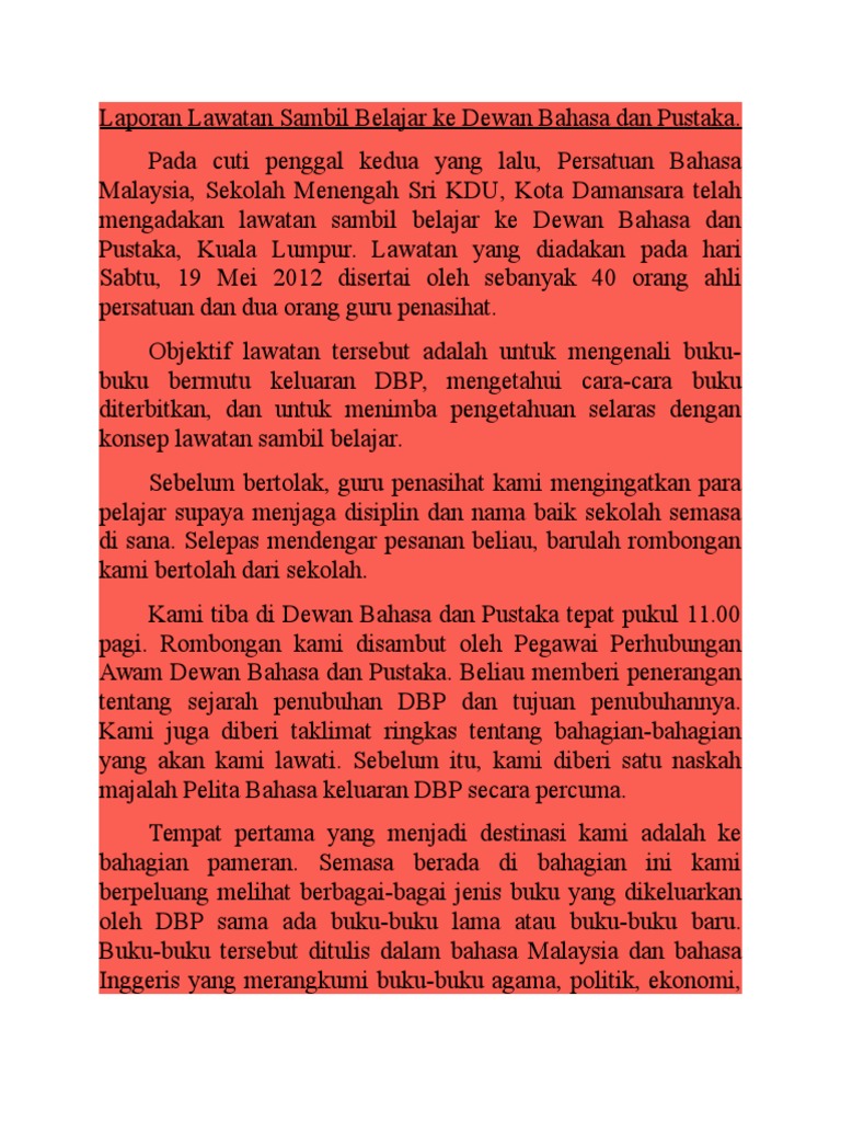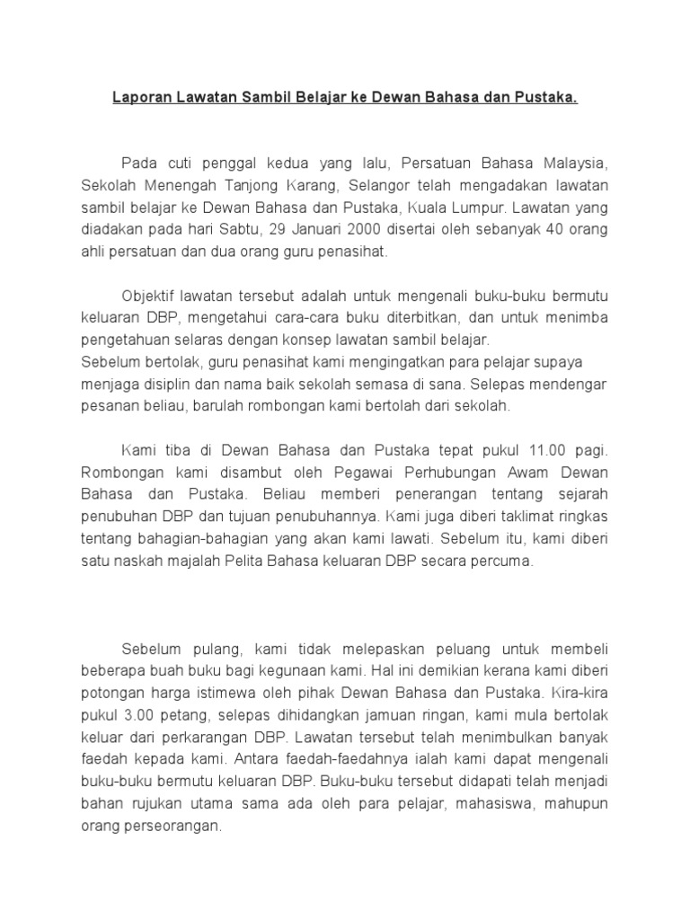 Contoh Karangan Dewan Bahasa Dan Pustaka By Da_Alice220 01 Jun, 2022 Post a Comment Contoh Karangan Spm Pdf Laporan Lawatan Sambil Belajar Ke Dewan Bahasa Dan Pustaka Pdf Contoh Karangan Jenis Laporan Pdf Laporan Lawatan Sambil Belajar Ke Dewan Bahasa Dan Pustaka Pdf Laporan Lawatan Sambil Belajar Ke Dewan Bahasa Dan Pustaka Pdf Share No comments for "Contoh Karangan Dewan Bahasa Dan Pustaka"